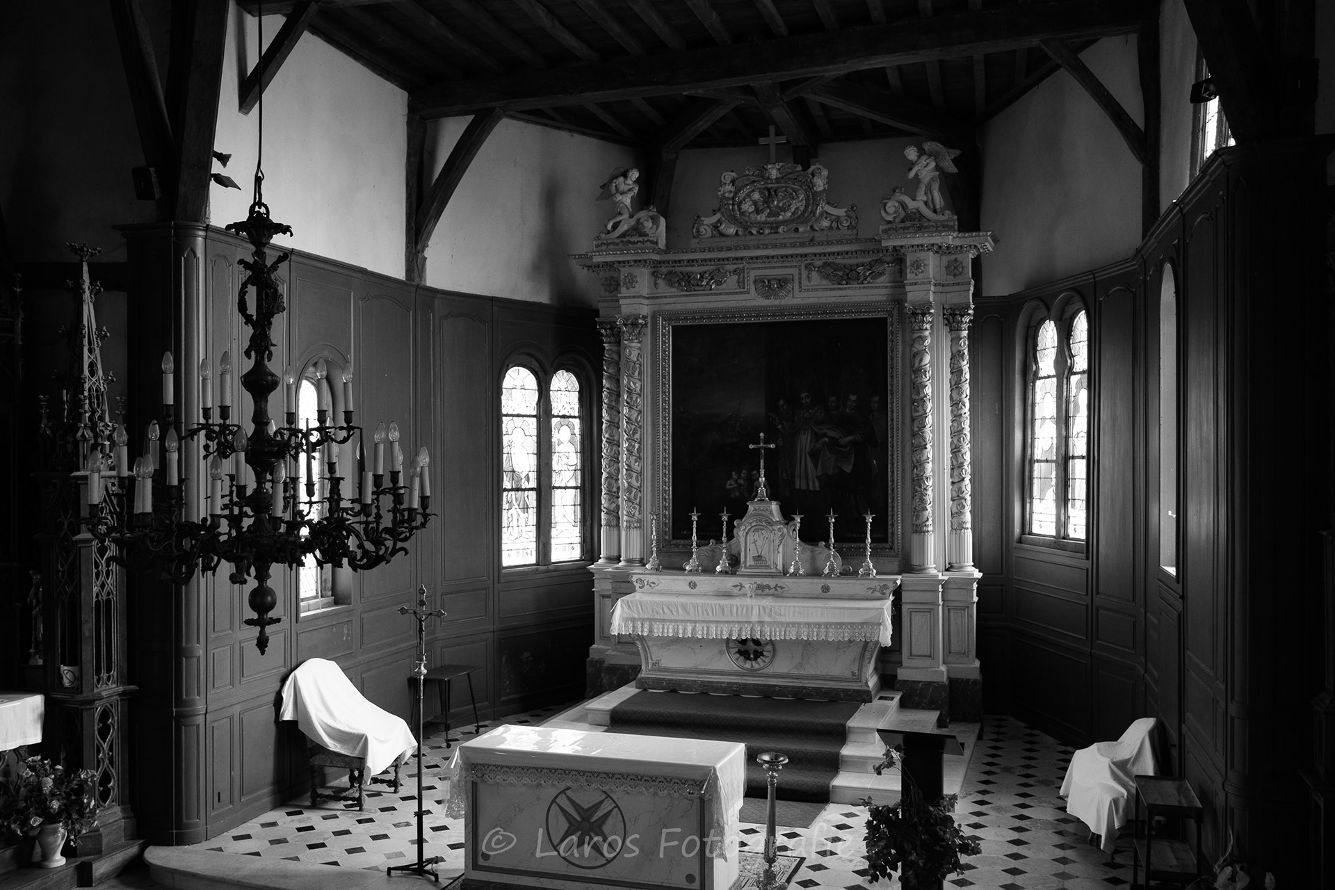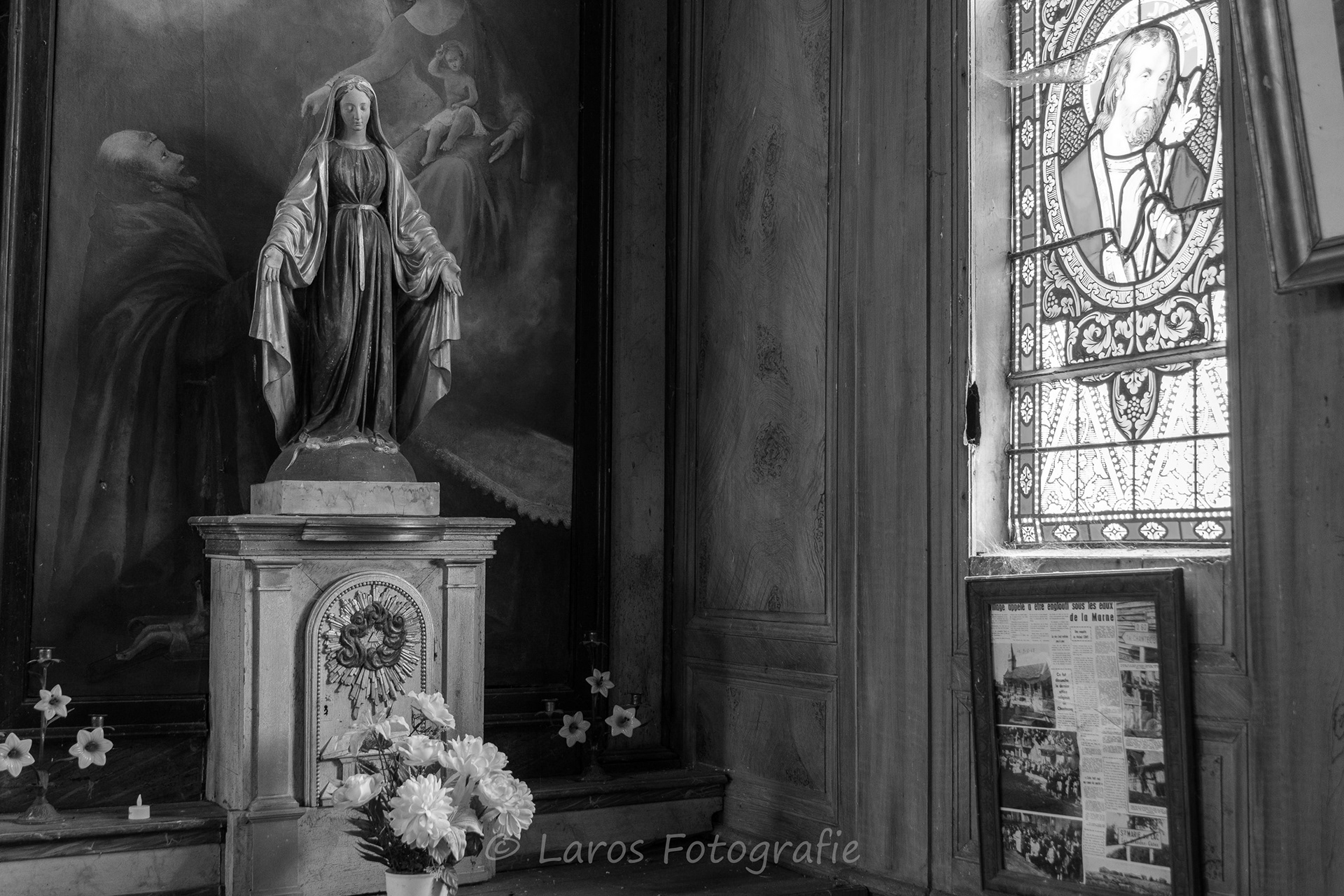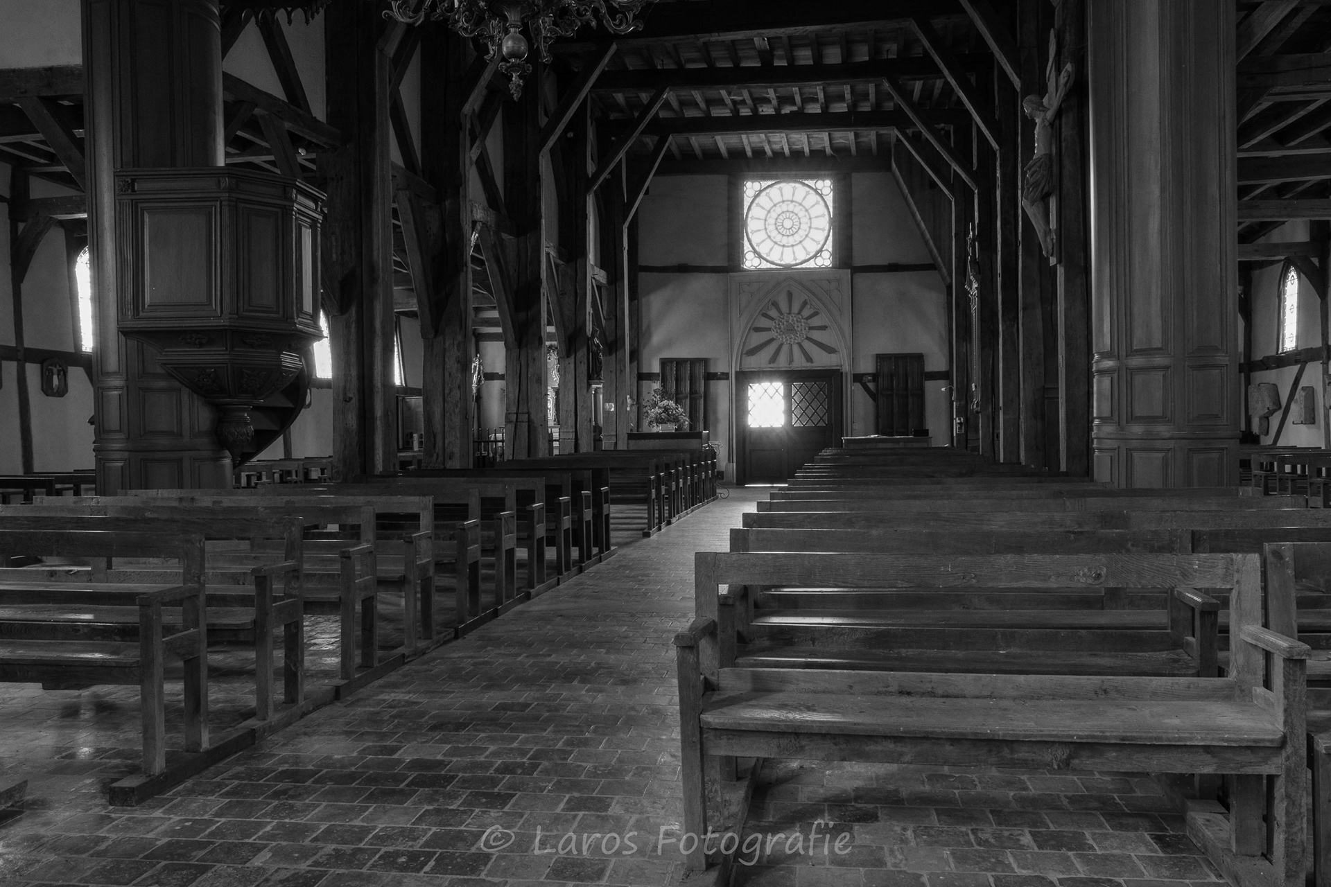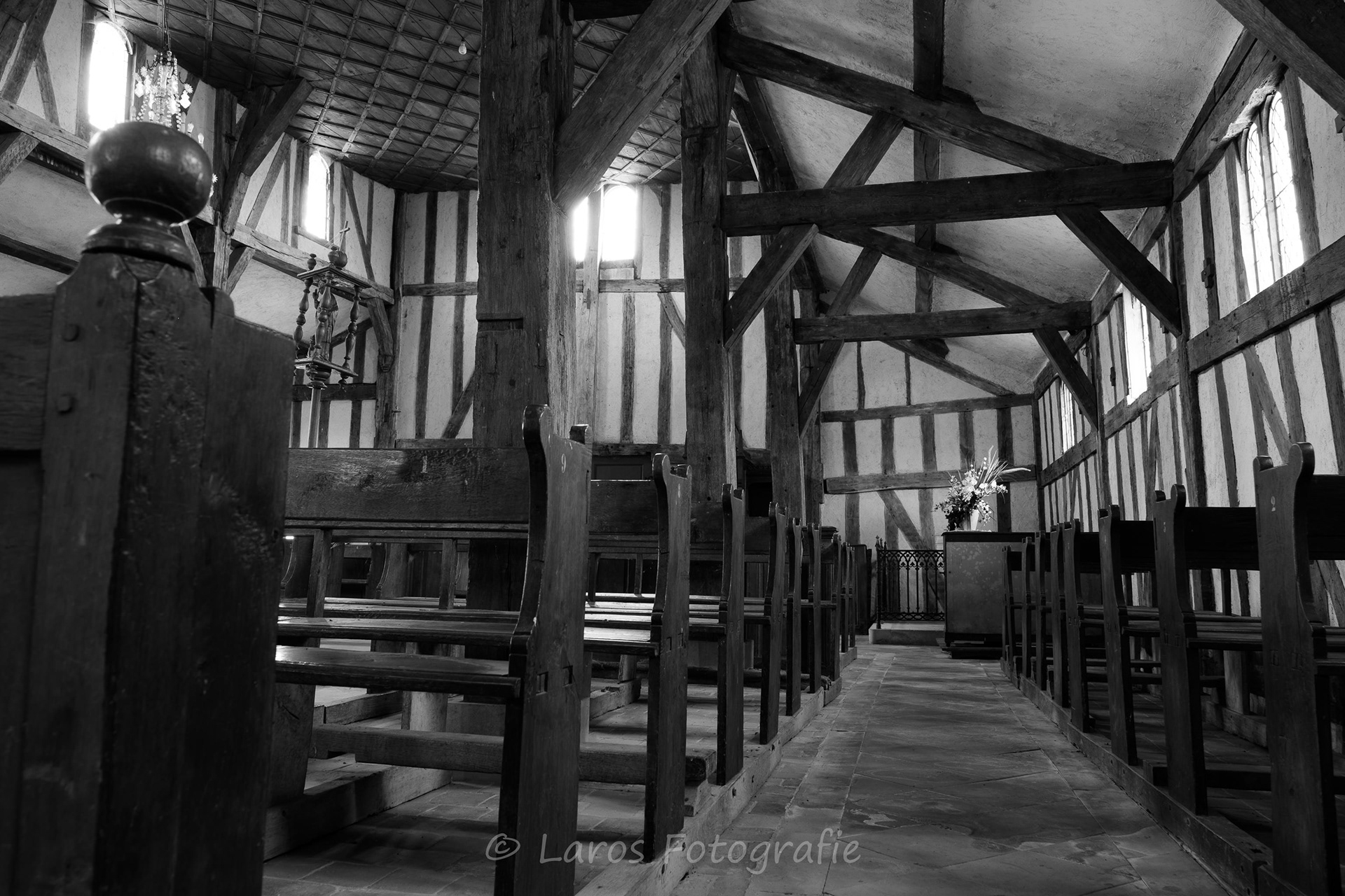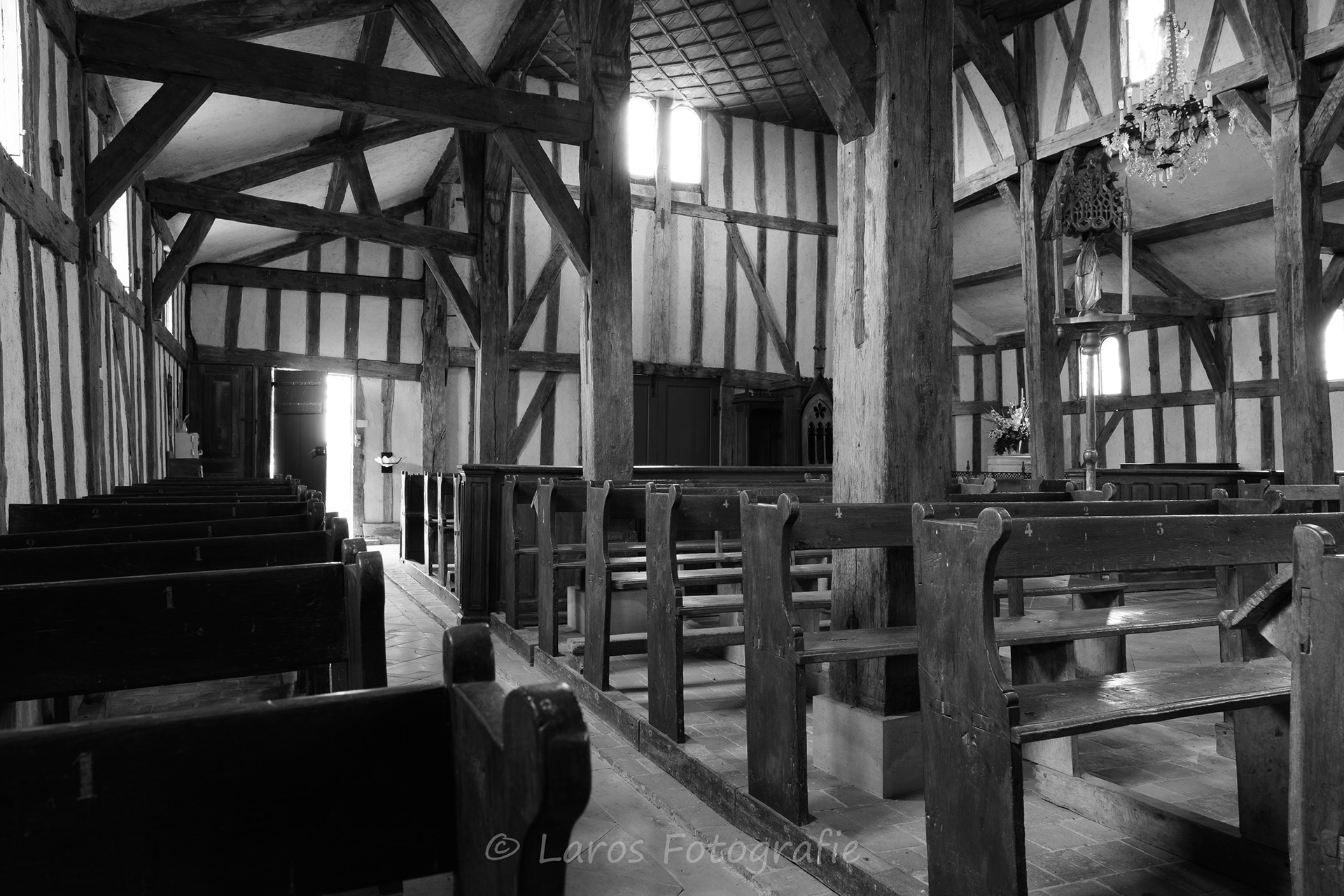 Het Lac du Der du Chantecoq in Frankrijk is bij veel vogelliefhebbers bekend door de kraanvogels die daar in voor- en najaar tijdens hun trek naar het noorden en zuiden uitrusten. Maar: er is meer in deze interessante omgeving. De stad Troyes bijvoorbeeld. Maar ook de vakwerkkerkjes bij het Lac du Der zijn bijzonder interessant - en vrijwel altijd geopend. Een onderwerp ook dat zich prima voor zwart-wit leent.